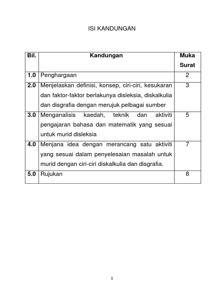 Bil Kandungan Muka Surat 1 0 Penghargaan 2 0 Menjelaskan Definisi Konsep Ciri Ciri Kesukaran