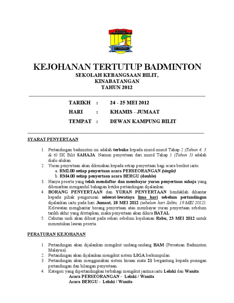 Borang Penyertaan Pertandingan Badminton Muhibbah Doc Google Drive