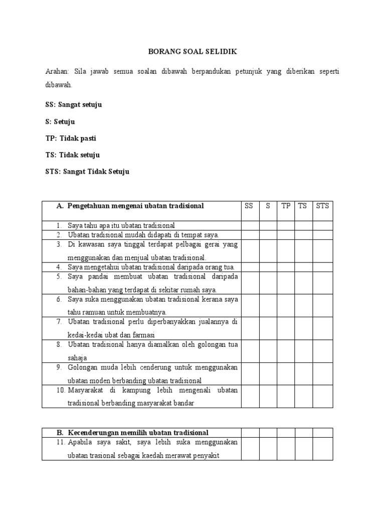Contoh Borang Soal Selidik