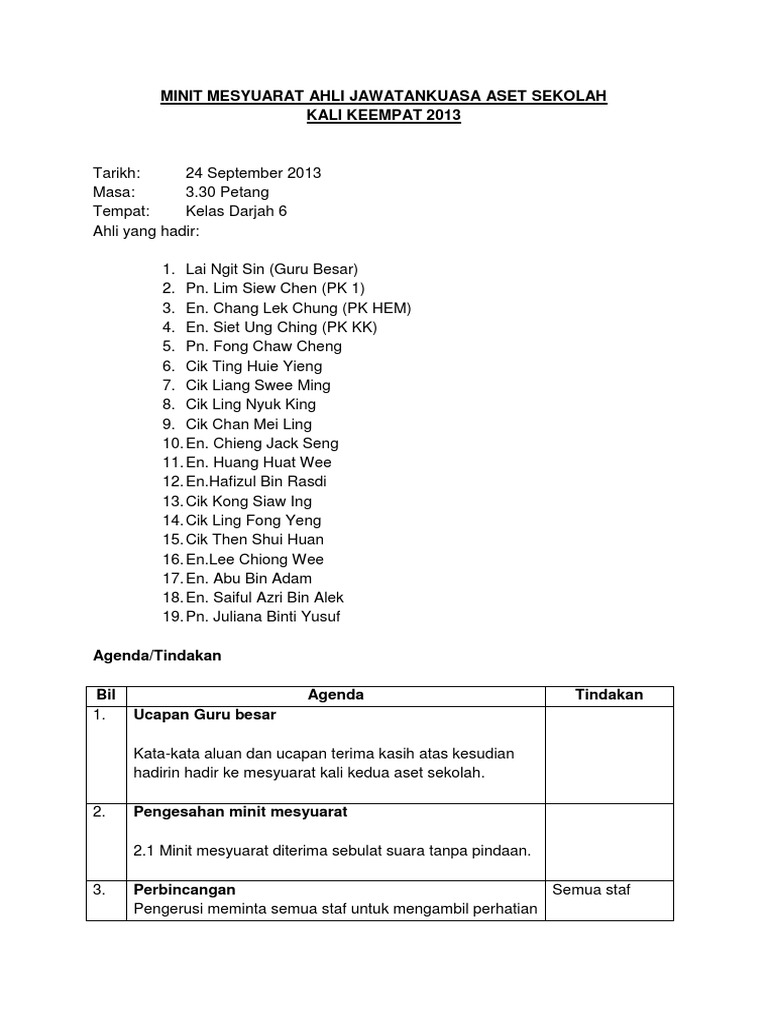 Minit Mesyuarat Ahli Jawatankuasa Aset Sekolah Docxkali 4