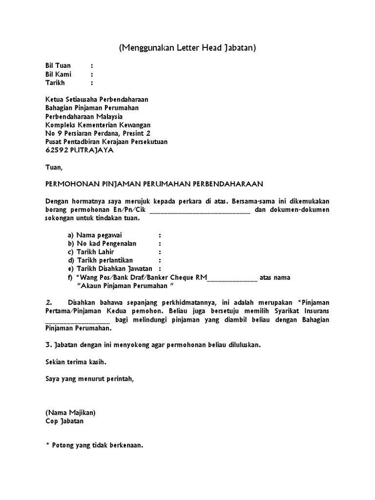 Contoh Surat Rasmi Permohonan Pinjaman Bank J Kosong W
