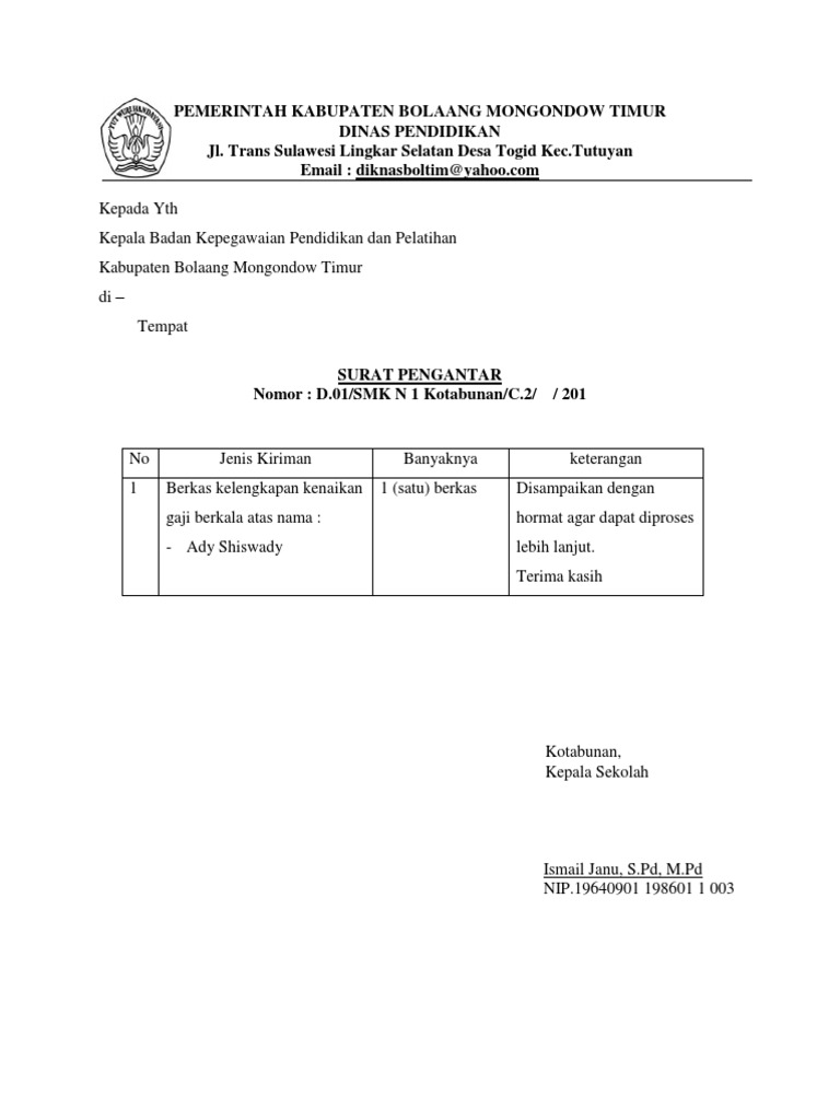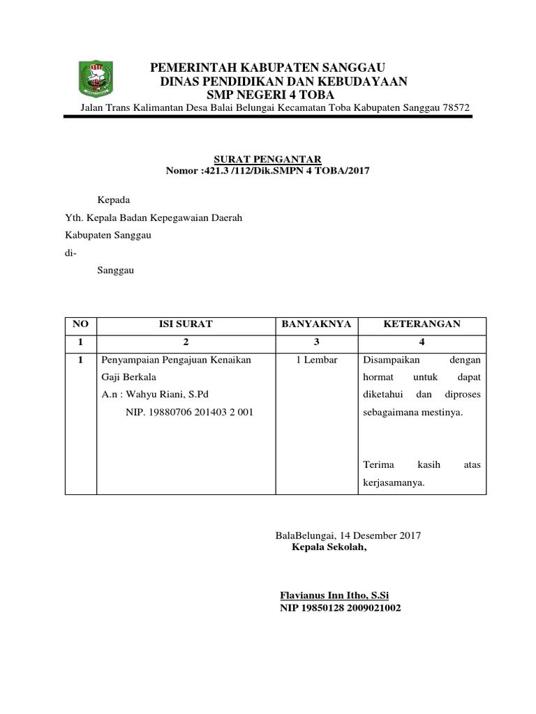 Contoh Surat Pengantar Kenaikan Gaji Berkala Pns Kumpulan Surat Penting