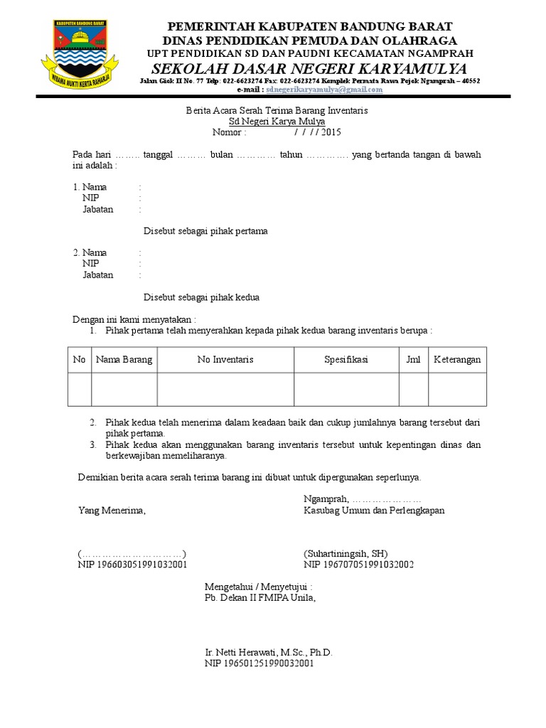 Contoh Surat Serah Terima Barang Inventaris Kantordoc Backup Gambar