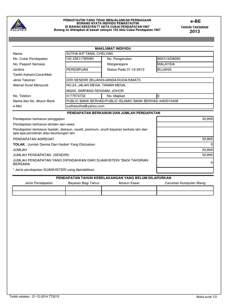 Maklumat Individu Tarikh Cetakan 21 12 2014 Tt2013 Muka Surat 1 3