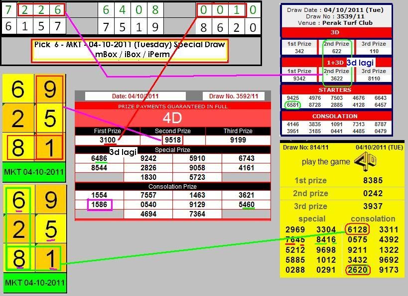 Gaming 4d Picks Analysis And Tips Result Analysis For Mkt Draw Date 04 10 2011 Tue Special Draw