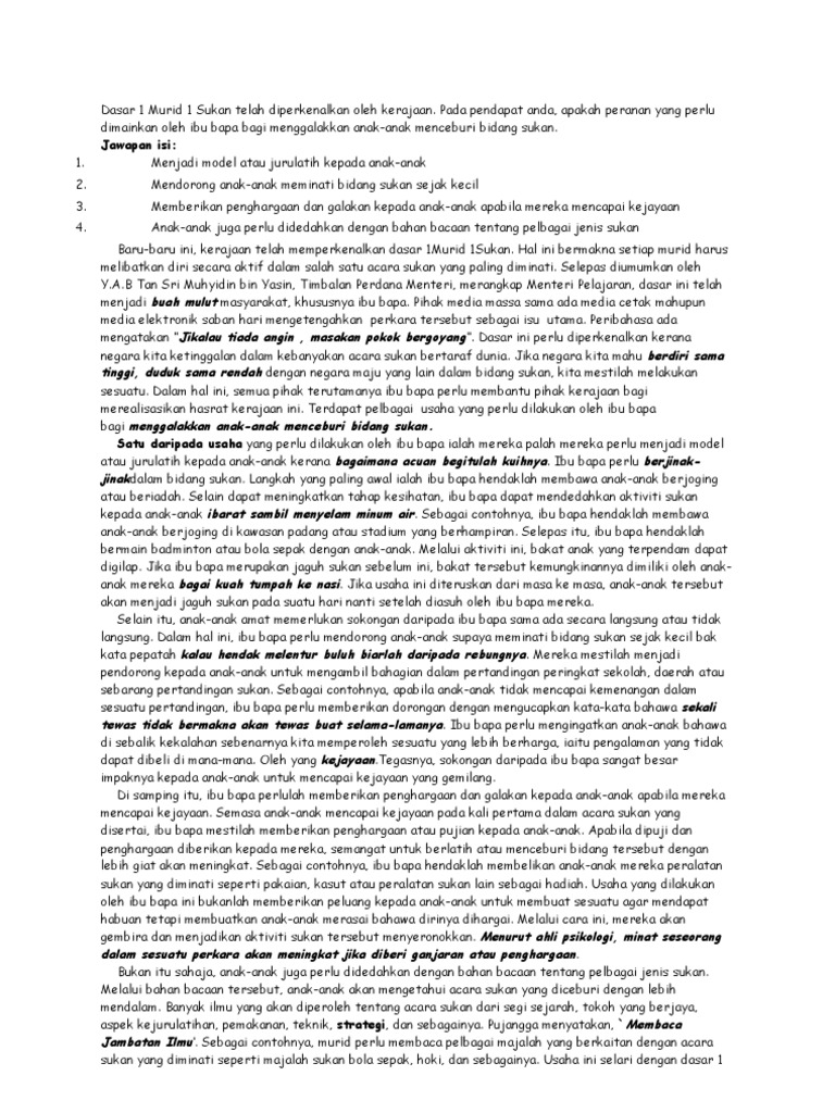 1 2 rasional dasar 1murid 1sukan mendokong dasar sukan untuk semua dan sukan untuk kecemerlangan. Minggu 1 dan minggu 3 setiap bulan hari masa kelab sukan permainan bil murid guru yang terlibat isnin 2 00 4 00 ptg 1. Jumlah ini merupakan 1 rekod baru dalam malaysian book of records.