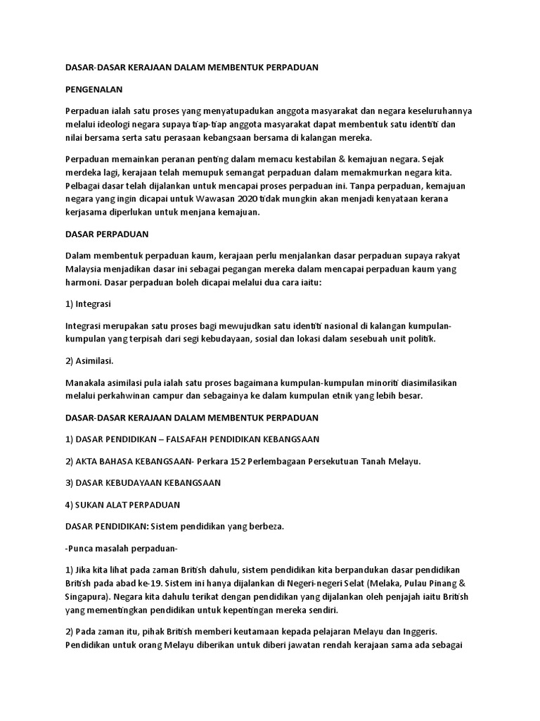 Dasar Kerajaan Dalam Membentuk Perpaduan Pengajian Am Pdf Document